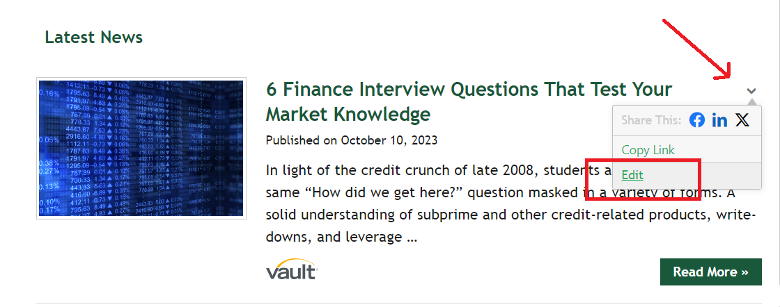 Locate the "caret" arrow in the right corner of the blog (or piece of content)