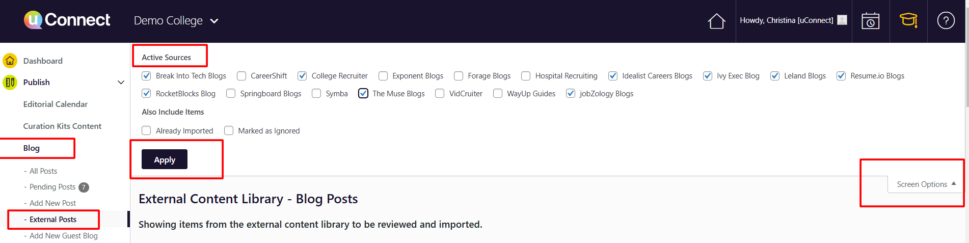 From here, check or uncheck which blog content providers you want to display moving forward now.