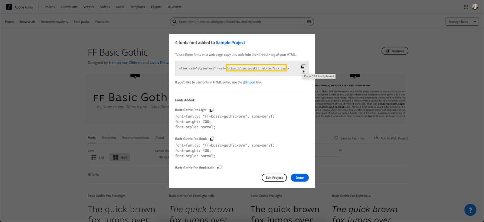 This is the link we’ll use to embed your fonts on your uConnect platform.