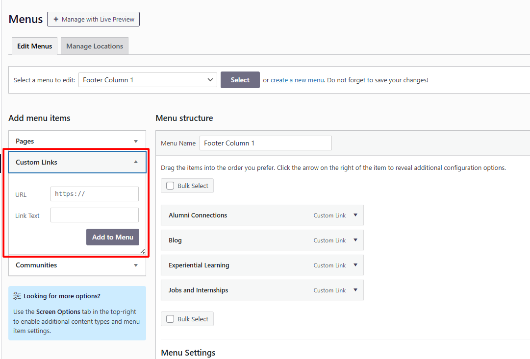 🔎 Don’t see “Custom Link”?
