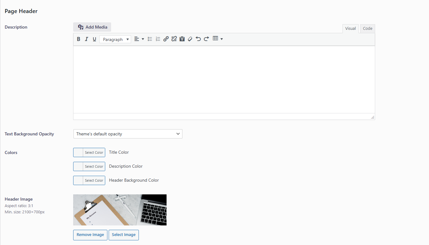 Next, you'll see several options to edit the text background opacity (the background color of your Community page title text), as well as the colors. Then you can edit the header Image itself and remember to keep in mind the image dimensions (Min. size: 2100×700px). You can also edit the header image alignment and the brightness.