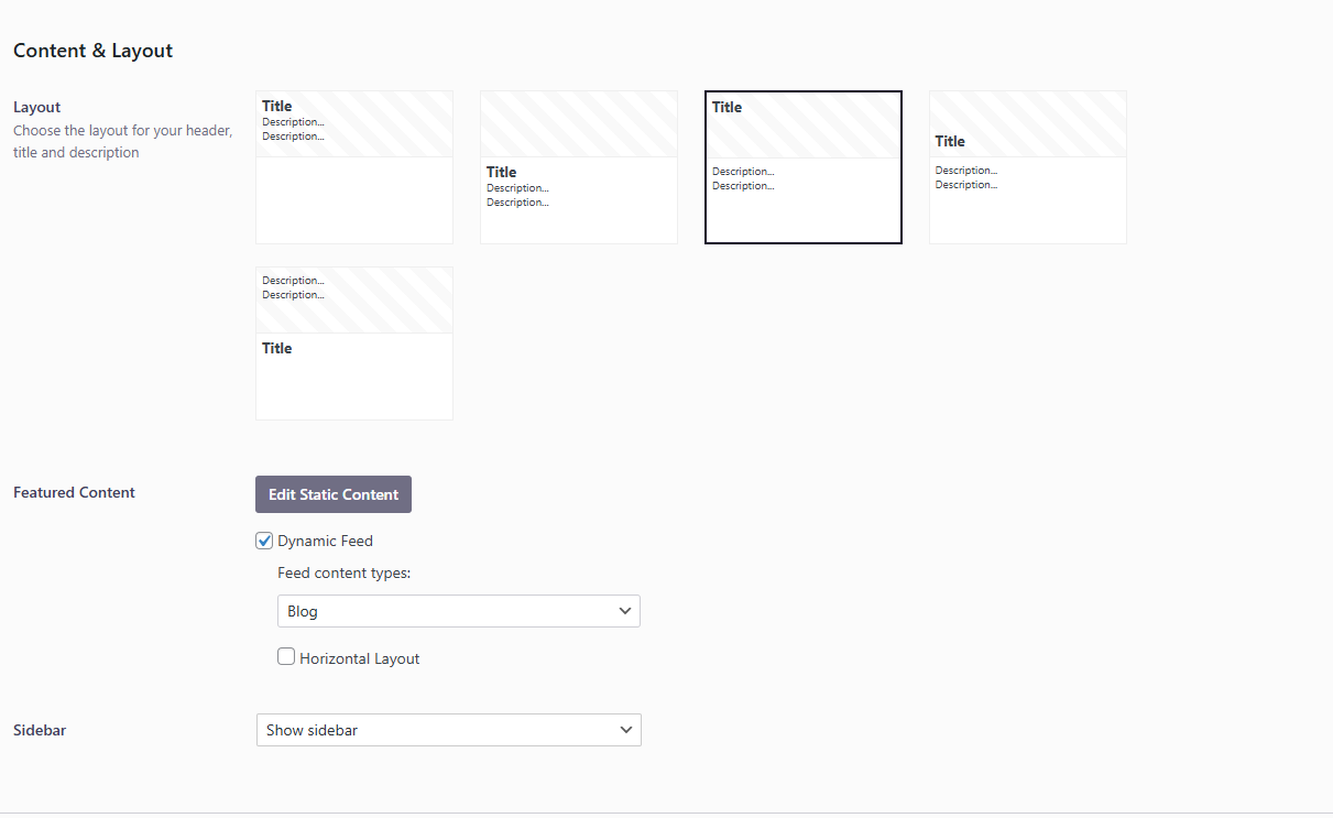 In this section, you can change the layout for how your Community page title and the header image should display on the front-end of the page - the side that students and other visitors will interact with.