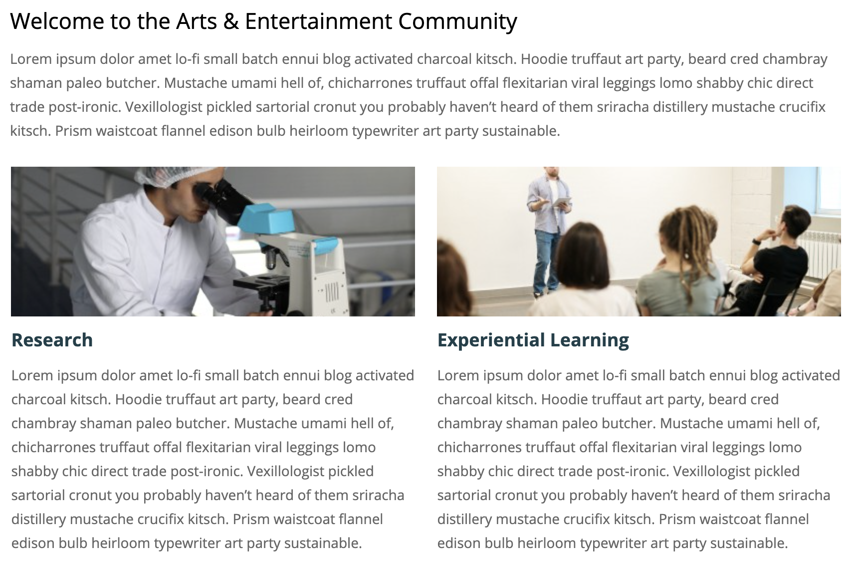 Featured content blocks help to organize information in your Communities, segmenting your description section into sections that make the text stand out, allowing your information to become even more visually appealing for users.