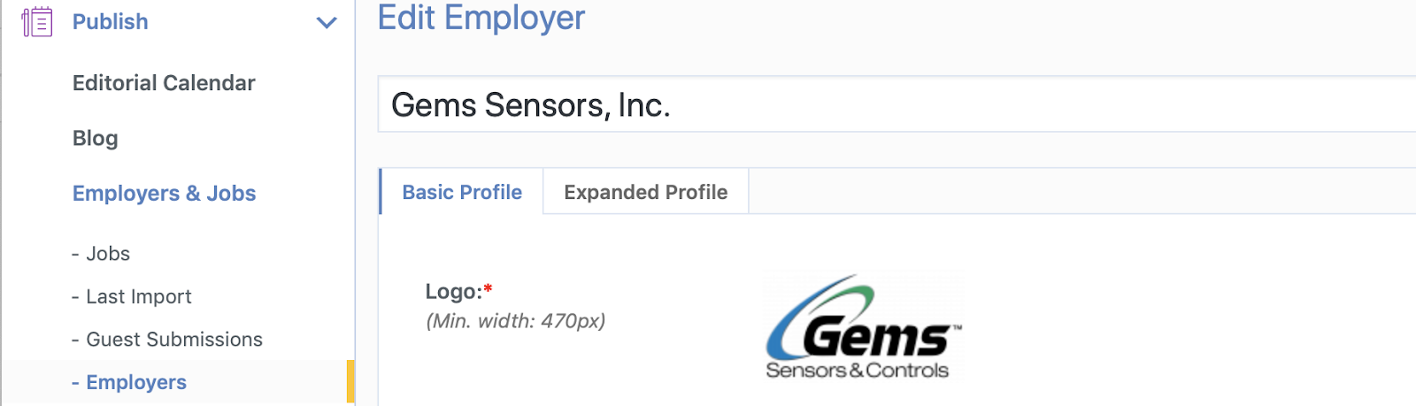 Logos are added to help platform visitors easily recognize an employer or resource. Uploaded logos should feature an organization’s official symbol/design, rather than an image associated with the company (a picture of their building, staff members, etc.). Logos appear in the top right corner of all published resources and jobs/employers.