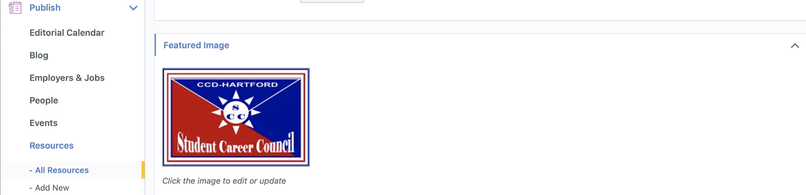 Select “Resources,” or “Employers & Jobs,” depending on the content you’re looking to assign a featured image to