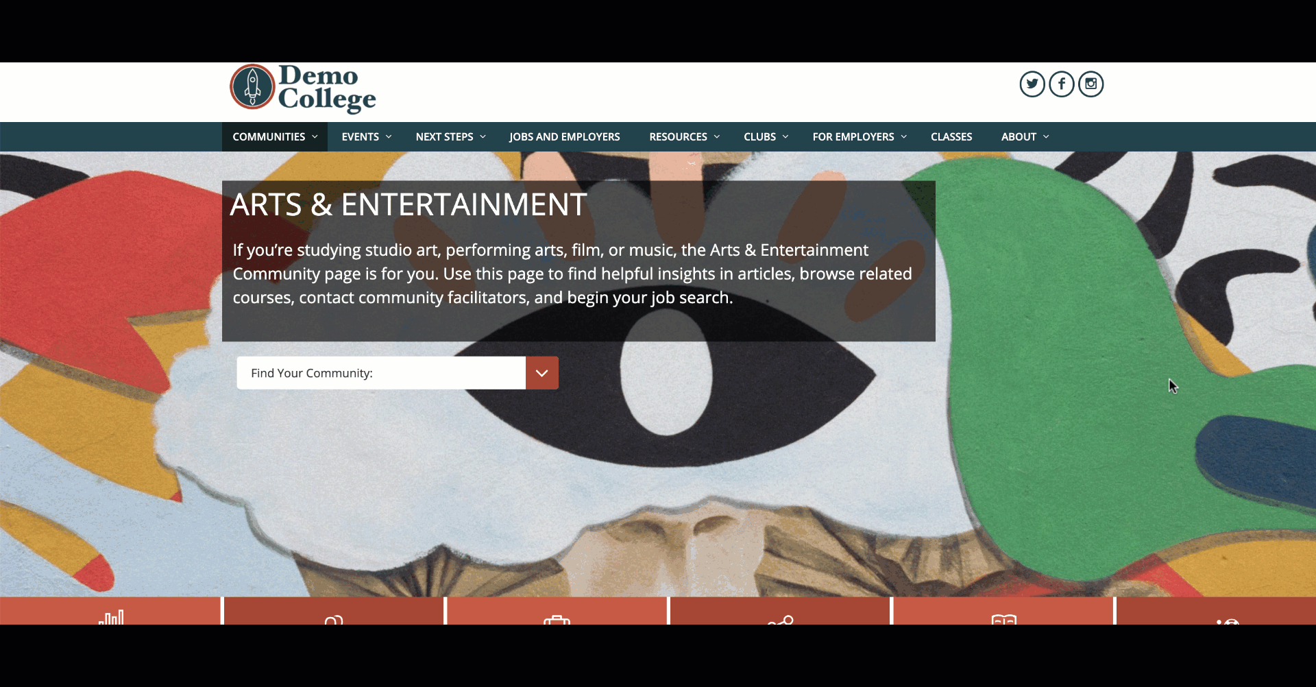 Career Communities are uniquely designed pages that aggregate and organize content within your site, either by areas of interest (industries), by academic categories (colleges or majors), by student population or YOG (year of graduation) -- or by other criteria that you determine.