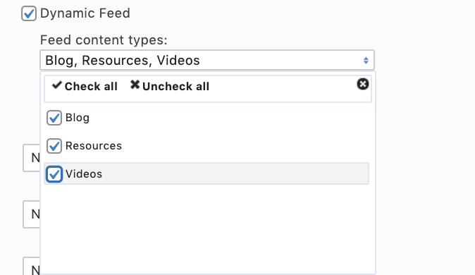 4. Choose the types of content you'd like to appear in this feed (you can add resources and/or videos, as well as deselect all).