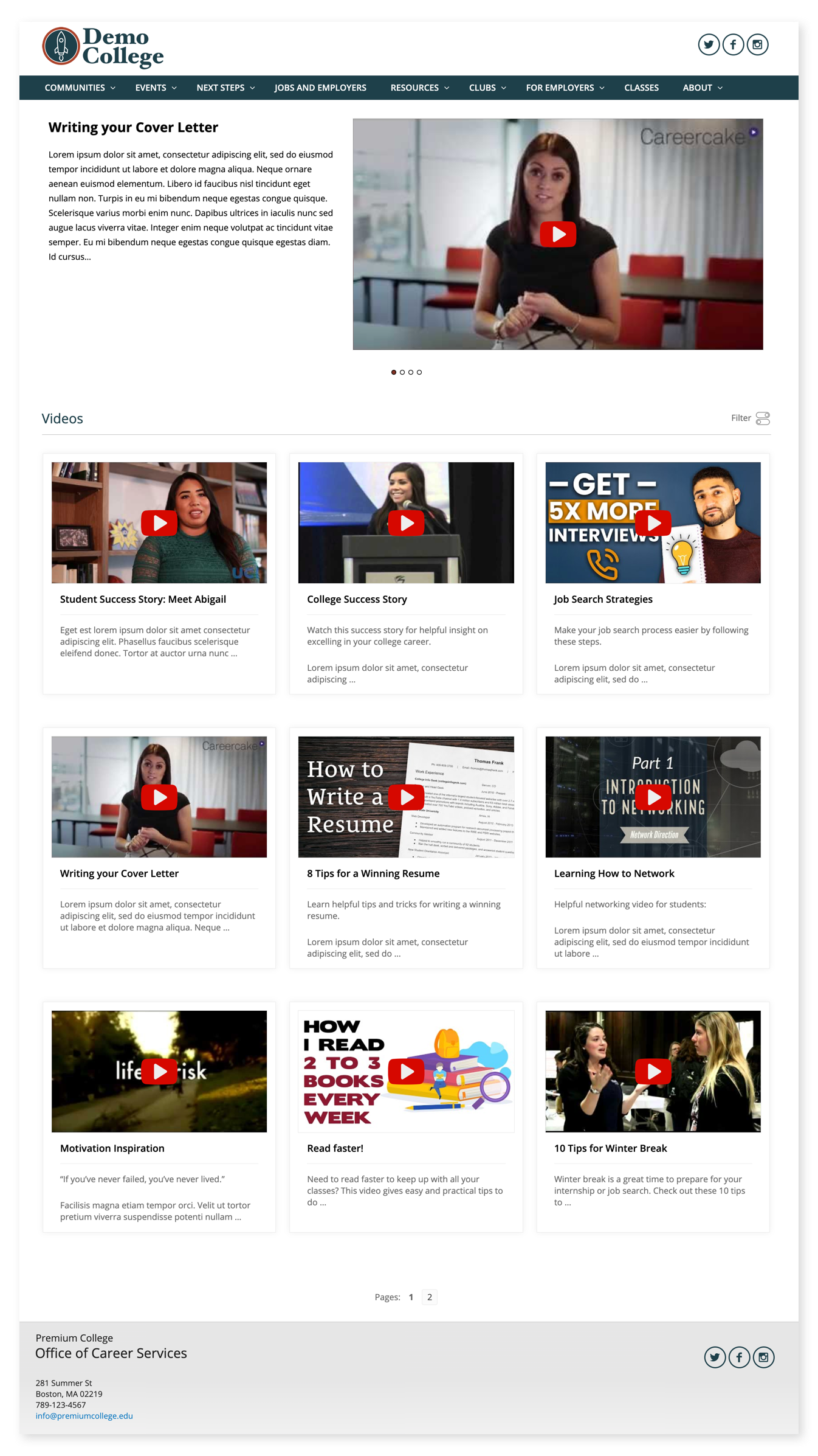 Example: careers.college.edu/videos/