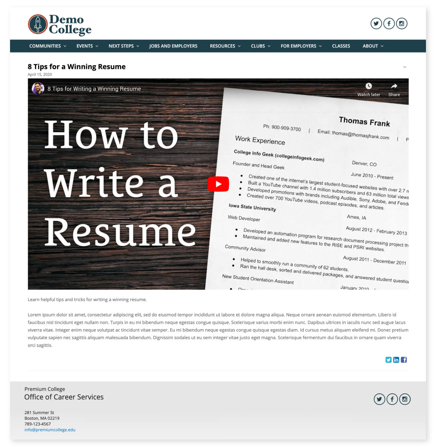 Videos are a great way to convey important alerts, instructional content, other career related information to your visitors in a familiar and easy-to-digest format. It's also a nice deviation from traditional text, and a more engaging way to deliver information!