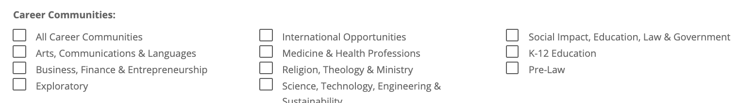 Filters appear under most content types, including resources, blogs, jobs, and more, to make information easier to find for students, faculty, and other platform visitors. Selecting a specific Community in the filters section will allow you to see only the blogs, resources, jobs, events, or other content tagged to a specific Community.