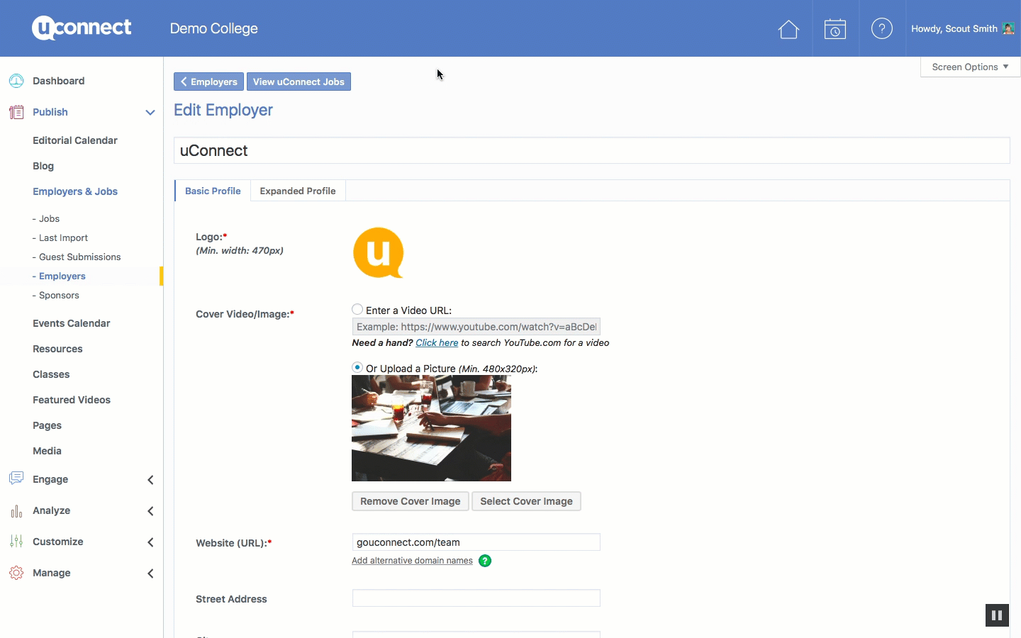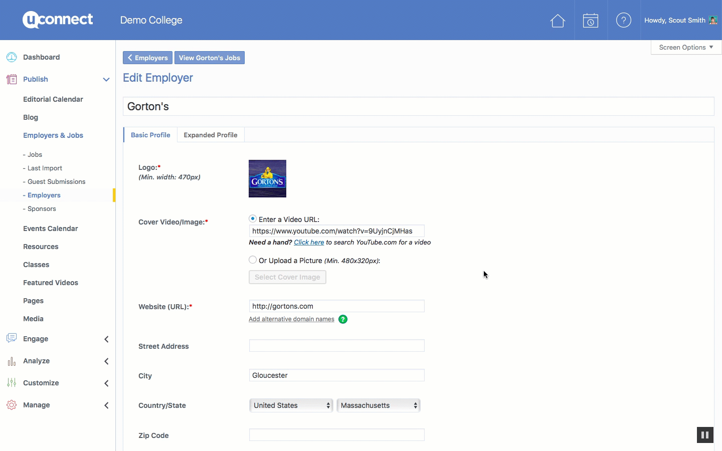 An employer profile can be set up with just a few basic pieces of information, which allows employers and staff to begin posting jobs. You can then choose to build upon this basic profile to create a fully developed profile page, which better engages students, drives career education, and ultimately increases the quantity and quality of job applications.