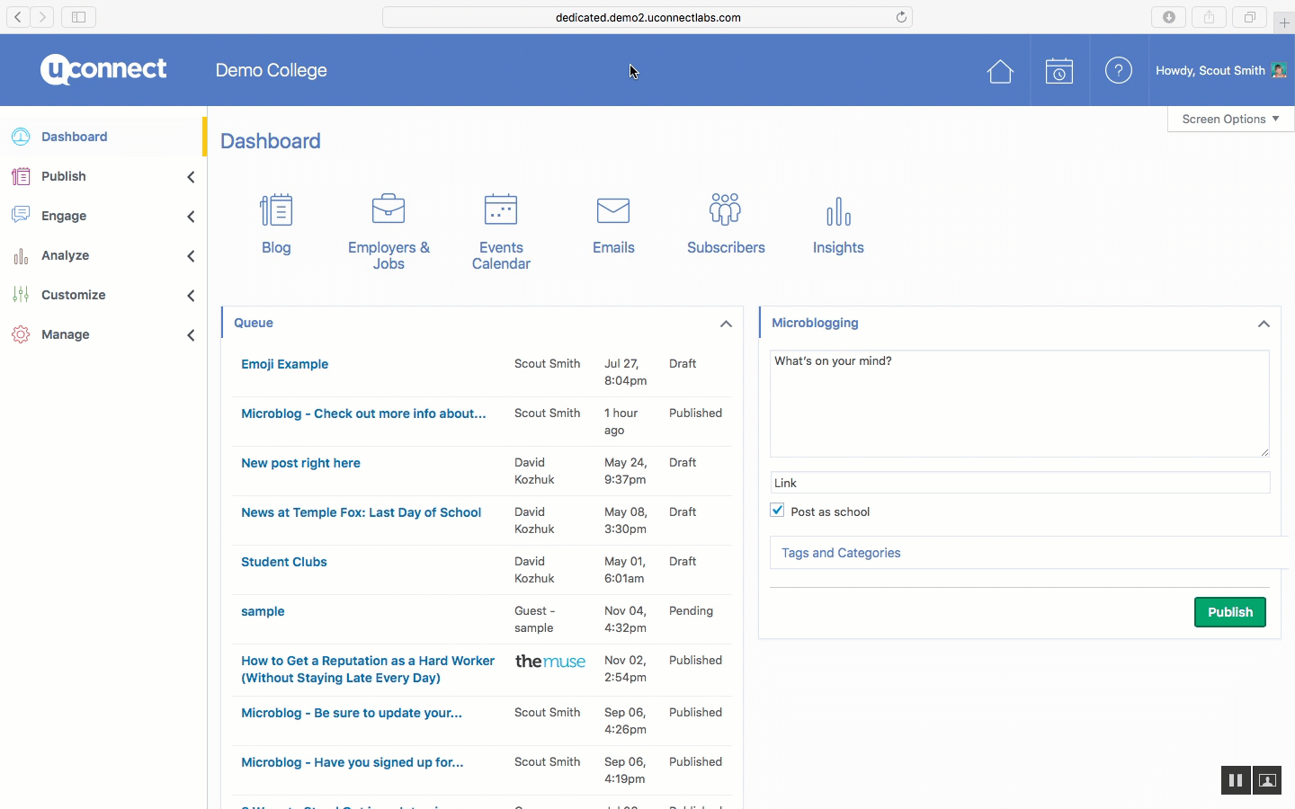 Click on the Publish tab in the left-hand side menu