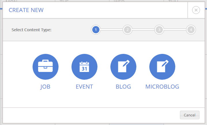 First, choose the kind of content you wish to schedule: Job, Event, Blog, or Microblog.