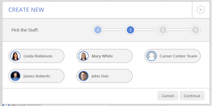 Next, you will see a list of your career center staff and community experts that have been added as users on your platform. Choose the staff member or community expert whose job it will be to create the content.