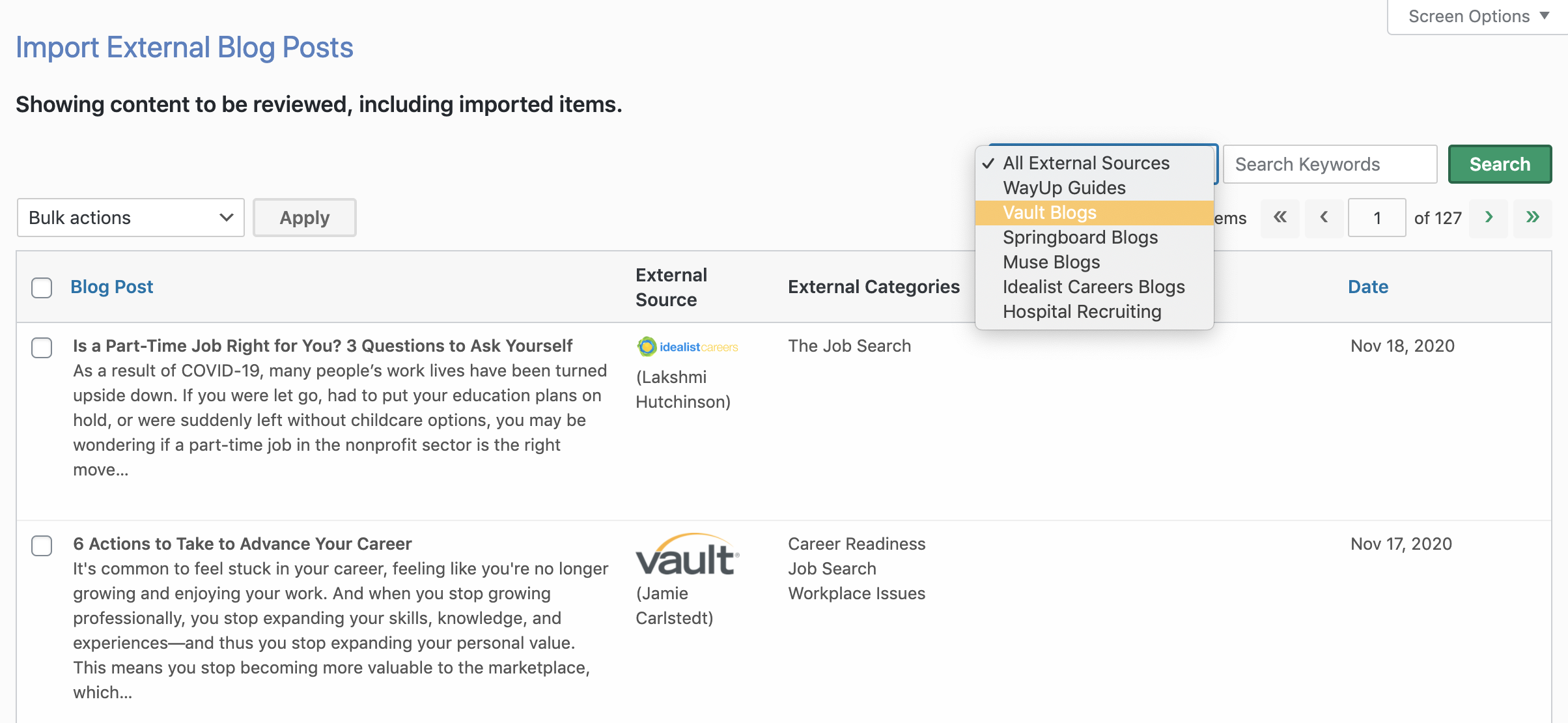 With uConnect's external blog manager, it's easy to sift through content from the Vault and import your favorites. Follow these instructions below to learn how: