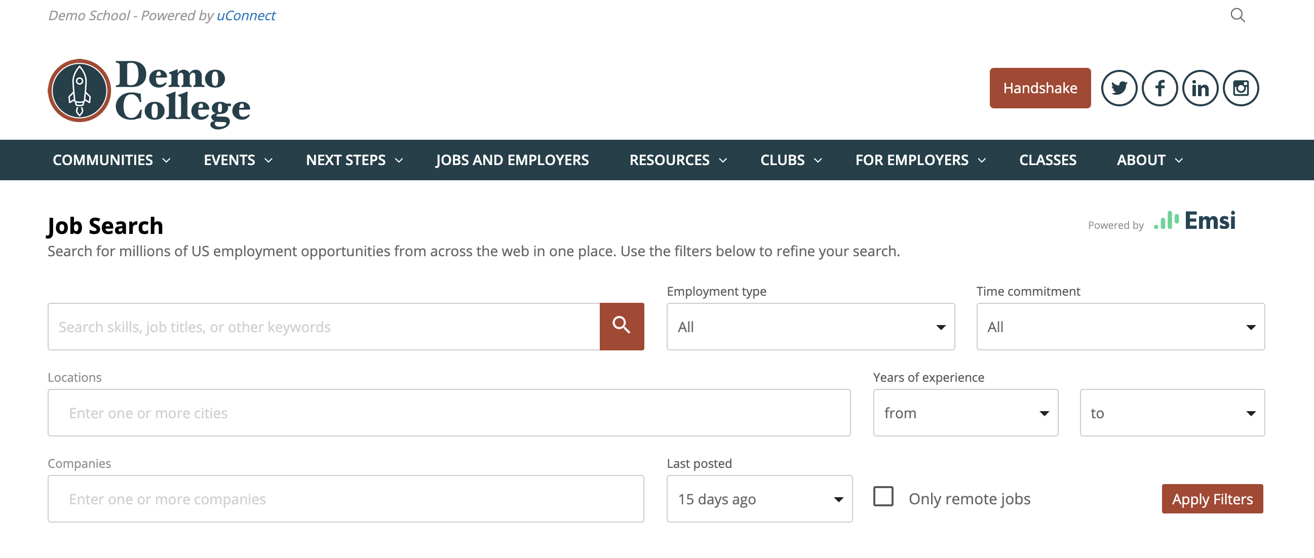 uConnect has partnered with Lightcast to create a job search directory that allows your students to search for available job postings from across the web, all from within your virtual career center.