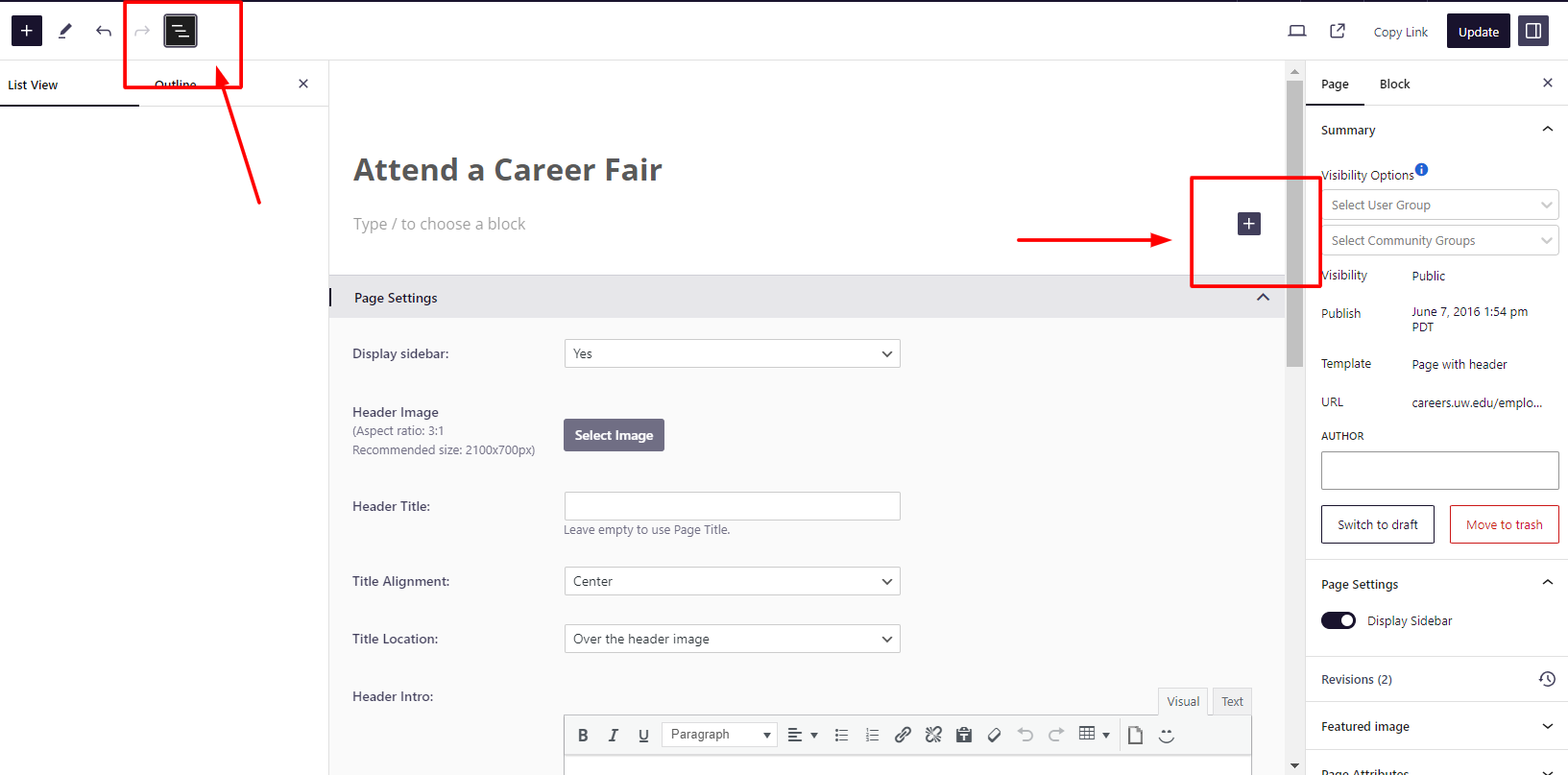 Once you are in the Block Editor, here are some basics to get started: