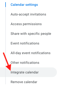 Step Four: Navigate to Calendar Settings and click on Integrate Calendar