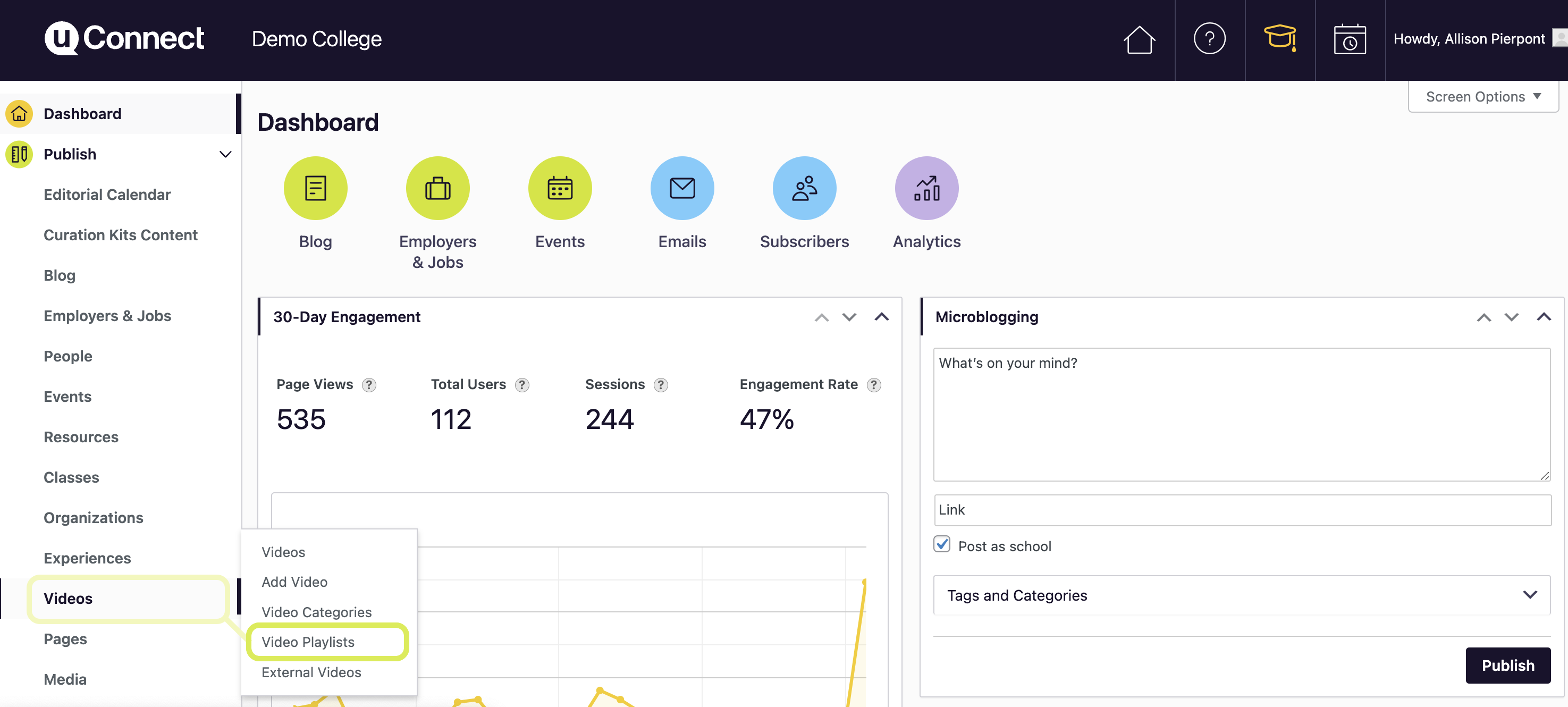 Share playlists with students before advising sessions, add them to your career development course syllabi or encourage faculty to embed them into their curriculum, having playlists stream on a TV within your physical career center... the sky is the limit to how you can use playlists to curate content and engage stakeholders with your high value video content!