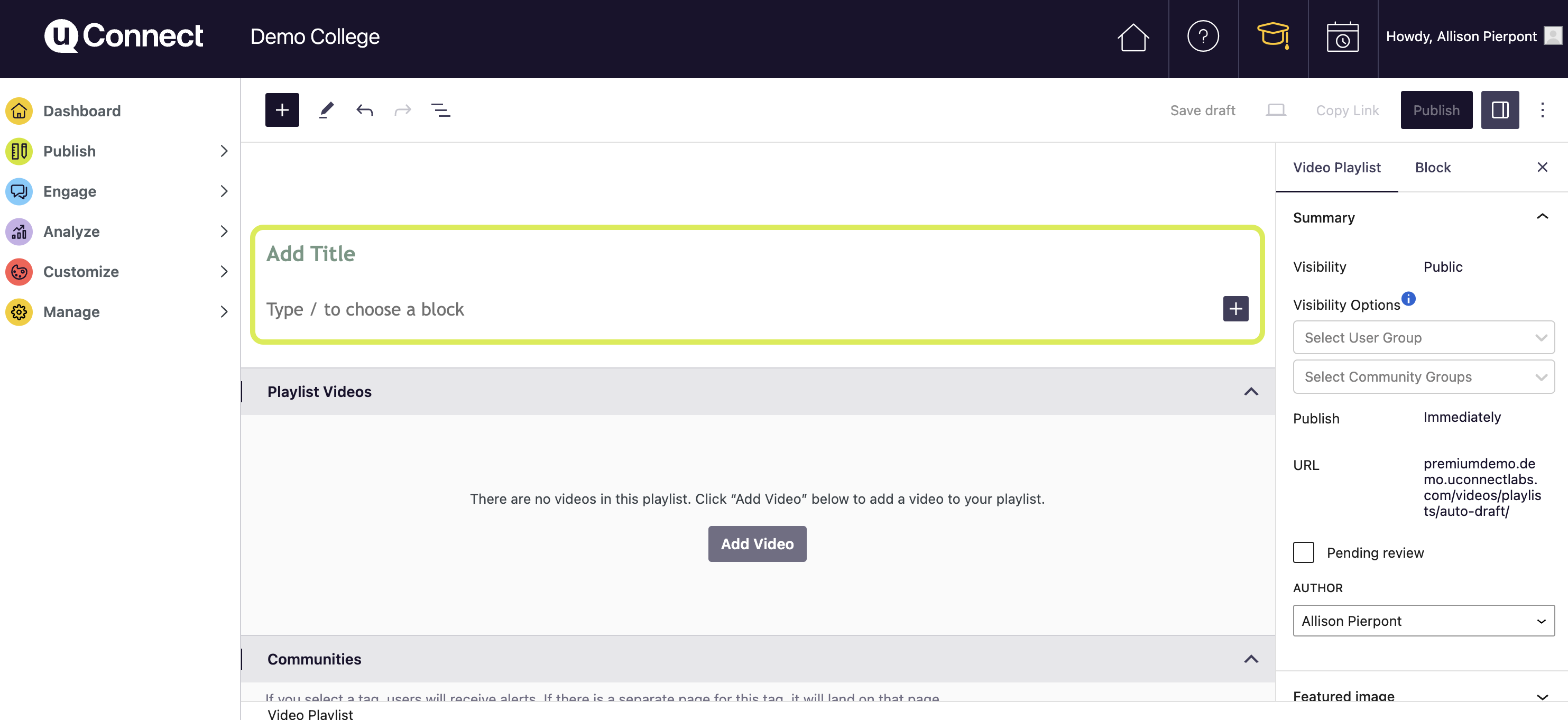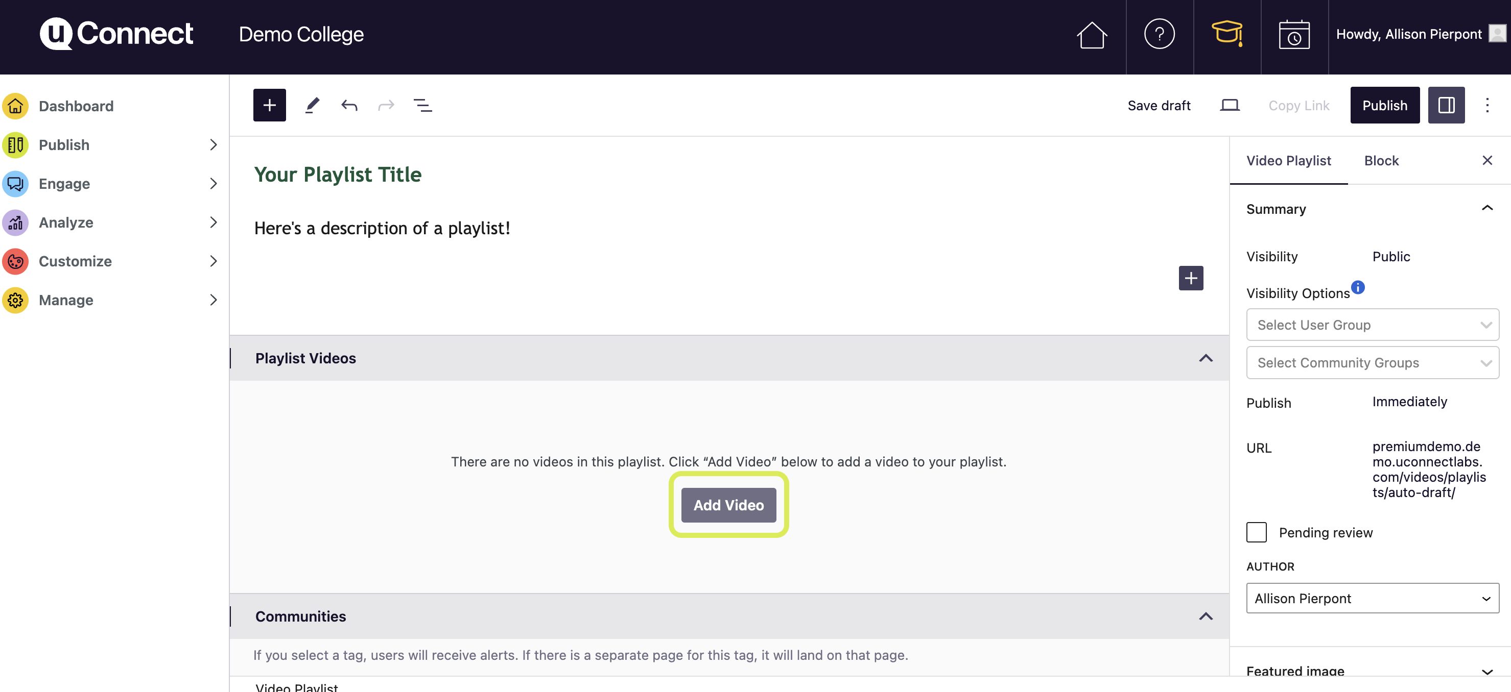 Once you're done creating your playlist, you can publish it by selecting Publish in the top right hand corner!