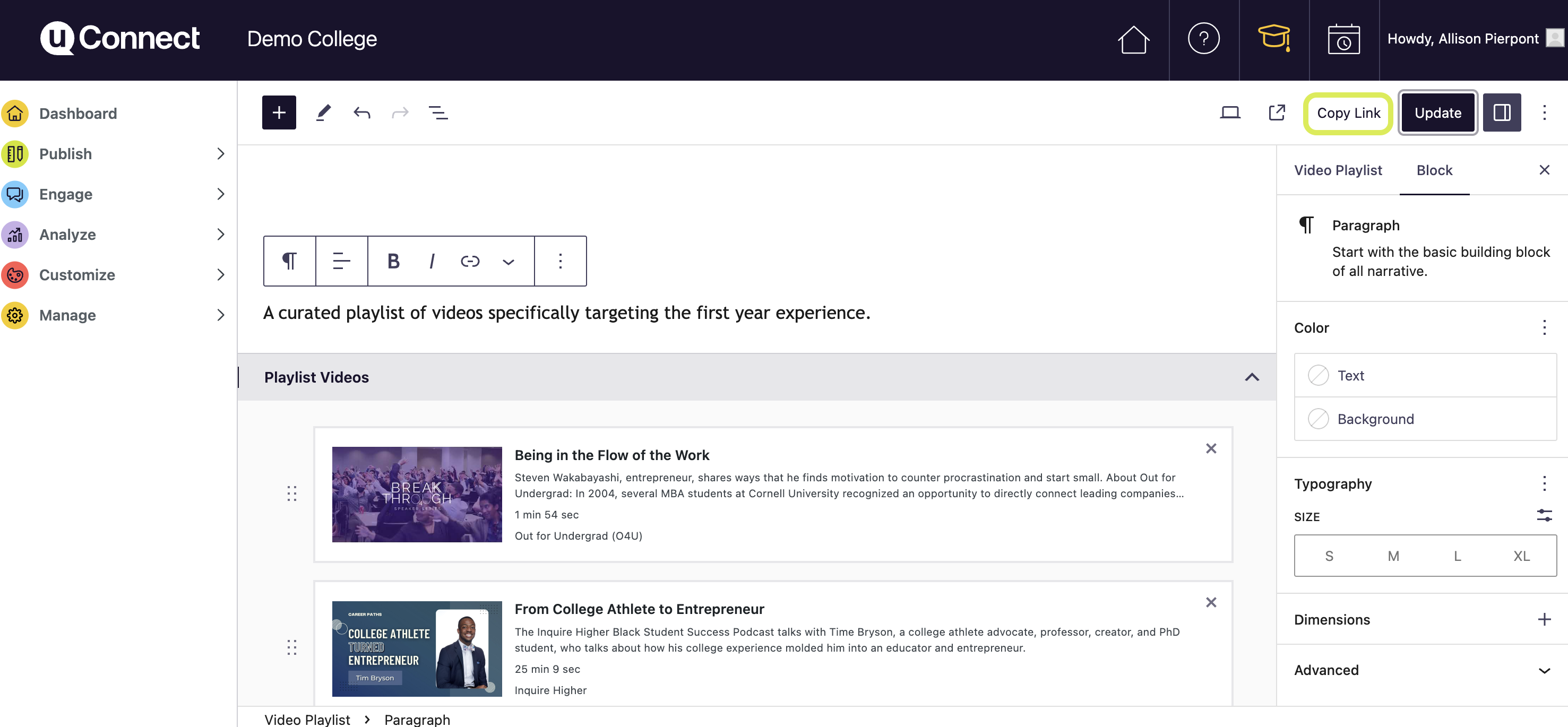 Once published, an easy-to-grab URL is made available via the Copy Link text in the top right corner so you can start sharing it with your student and stakeholders!