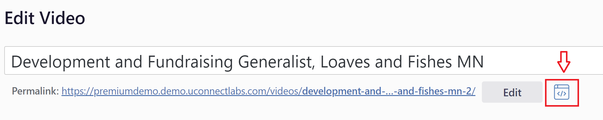Once you've found a Candid Career+ video that you would like to embed, simply click on the video and then on the embed logo that appears to the right of the video URL, below the video title.