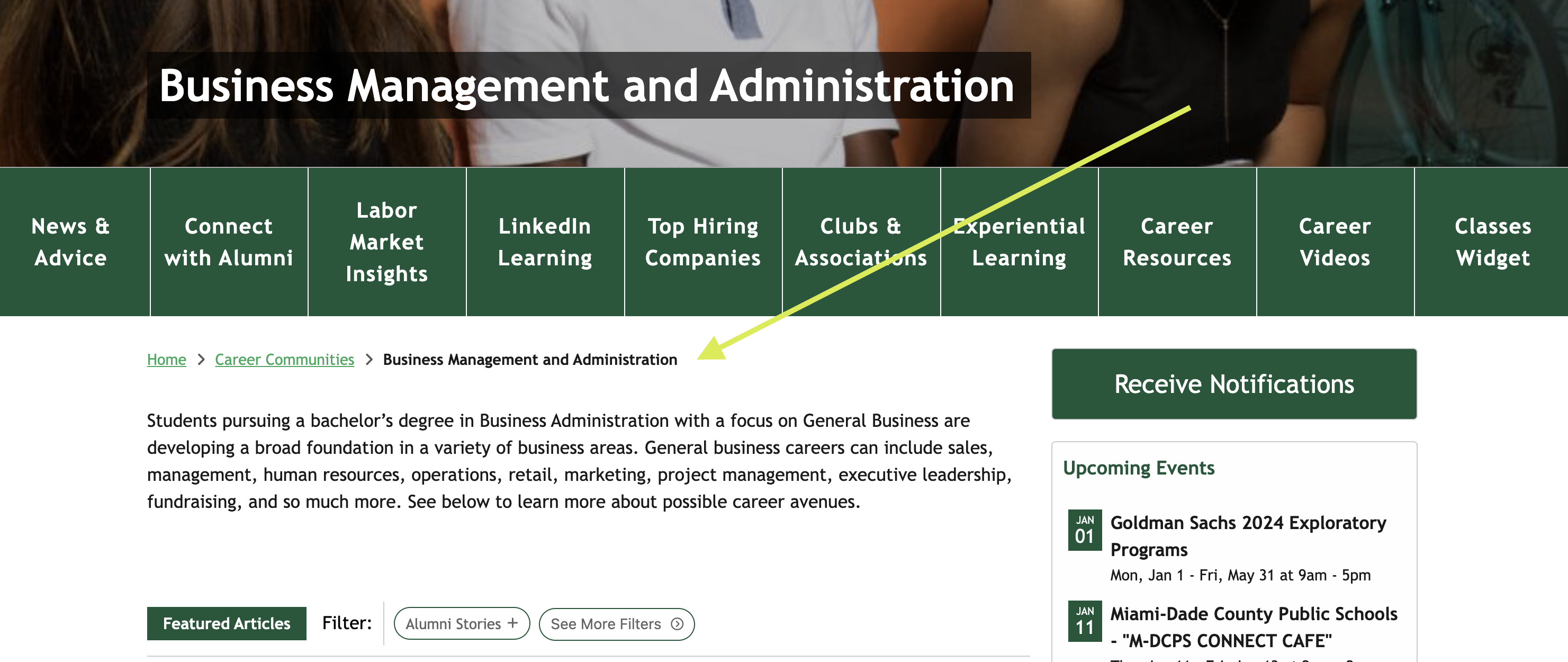 At their core, breadcrumbs act as a secondary navigation tool to help users navigate your platform. They are located just under the header image of your community pages, and appear as a horizontal list of clickable links. Breadcrumbs show the current community page and its ancestors, or parent community pages the user has navigated through to get to the current page.