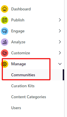 Step One: Navigate to the Manage > Communities area of your platform