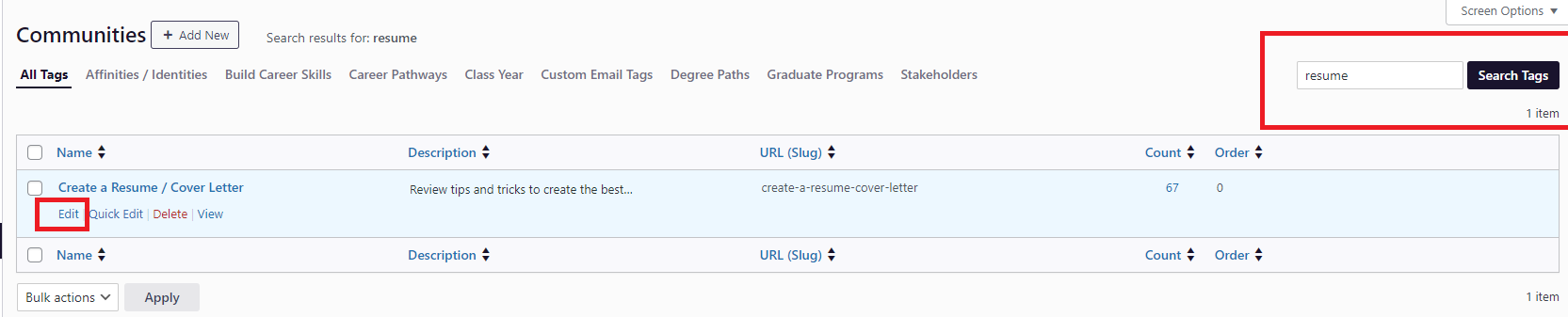 Step Two: Locate your desired Community and select 'Edit'