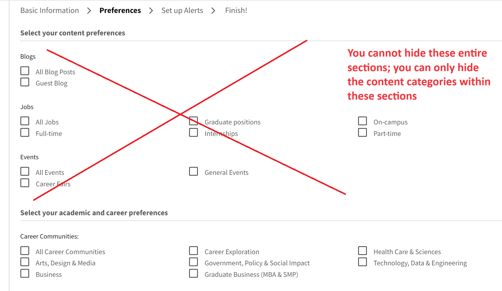 You CAN hide any Communities from appearing on the preferences screen, whether they are Career Communities, Affinity/Identity Communities, Career Development Communities. etc.
