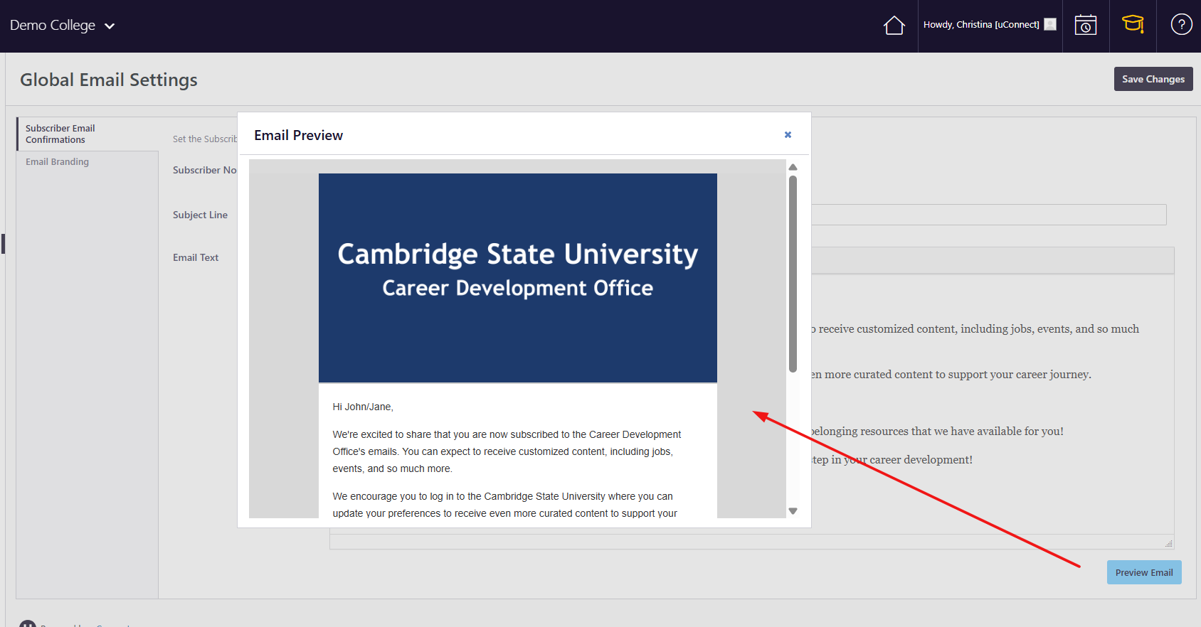 - Email Body Text – Personalize the message to your Career Center's voice and your subscribers' audience (students, alumni, faculty, etc.)